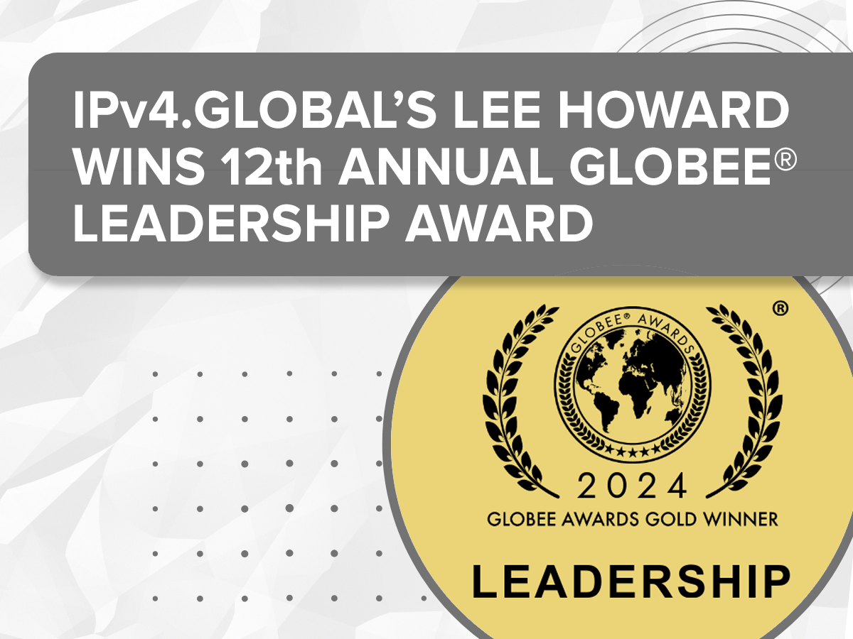 IPv4.Global is proud to announce its Executive Vice President, Lee Howard has been named a winner of the Business Leader of the Year at the 10th Annual 2025 Globee® Awards for Achievement Read more