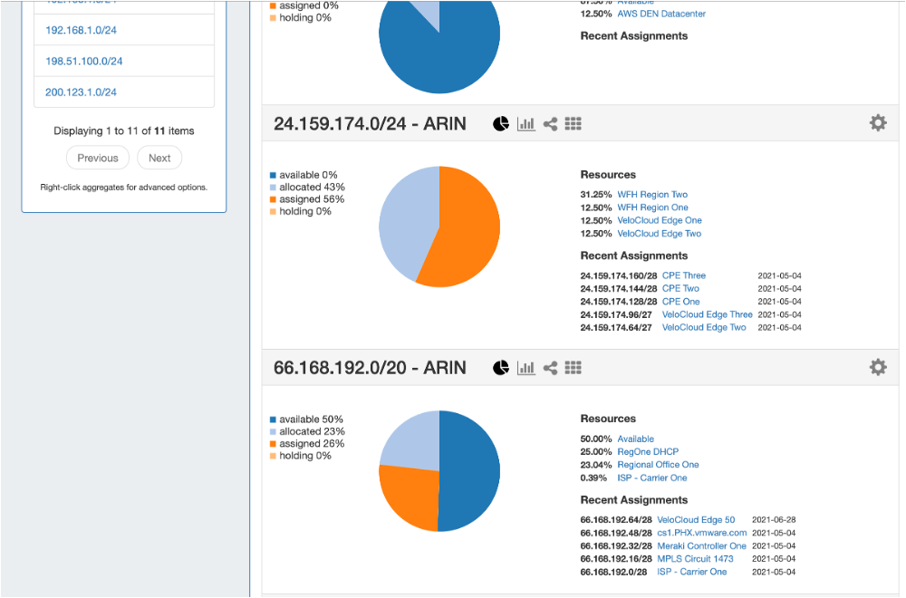 - Capacity planning dashboard: Knowing which subnets are approaching capacity and those rarely even half used lets to avoid service outages by rearranging IP addresses.