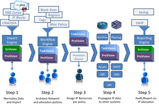 These network resources are typically combinations of physical and virtual elements such as IP addresses, VLANs, DNS zones, DNSSEC keys, DHCP scopes, and tracking other device related data sets for integration into other platforms, billing systems or monitoring environments. This paper examines these trends and highlights how ProVision’s Dynamic Network Provisioning platform efficiently and effectively performs these important network operations functions at a much lower operational cost than traditional hardware or legacy homegrown solutions.