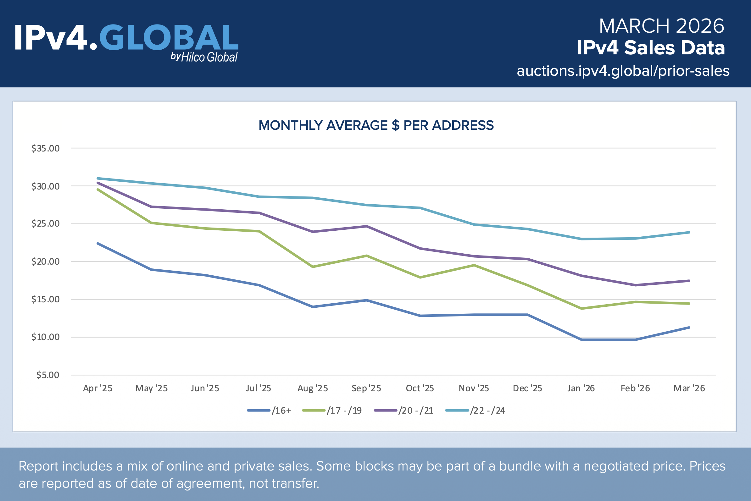Are we seeing a true rebound in the IPv4 market? After a stable February where prices stopped their steady dip, we are now seeing a bit of an uptick. Volume and demand continue to be strong and diverse both by industry and region, with demand and volume for all block sizes. Based on trends we expect to see continued strength in this market.