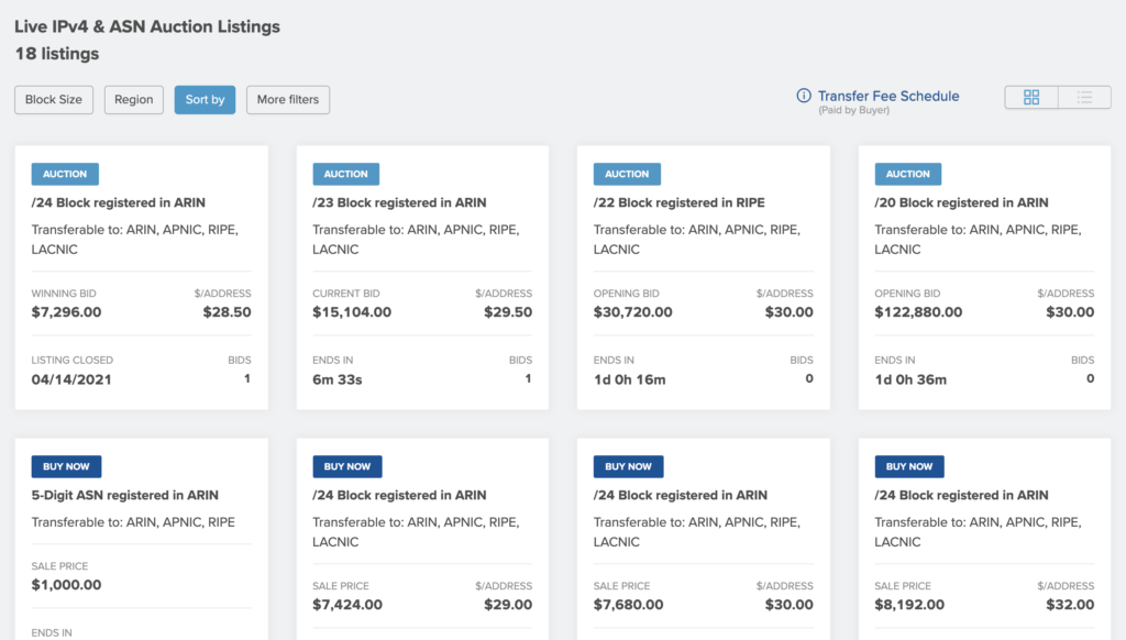 You can view our IPv4 listings freely at any time. If you’d like to begin selling addresses soon, register today.